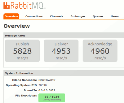 The previously mentioned management plugin is now in a state where it's worth looking at and testing. In order to make this easy, I've made a special once-only binary release just for the management plugin (in future we'll make binary releases of it just like the other plugins). Download all the .ez files from here and install them as described here, then let us know what you think. (Update 2010-09-22: Note that the plugins referenced in this blog post are for version 2.0.0 of RabbitMQ. We've now released 2.1.0 - for this and subsequent versions you can get the management plugin from here).